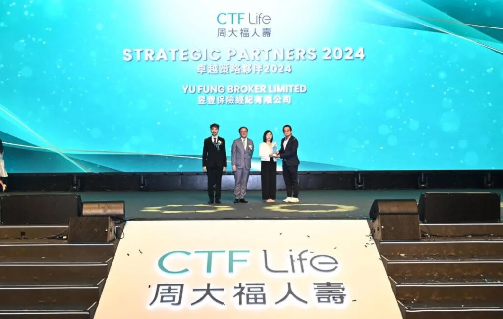 On September 26, 2024, Yu Fung Broker was honoured to attend the “Creating New Value in Insurance and Celebrating the 40th Anniversary Gala” hosted by Chow Tai Fook Life Insurance (CTF Life). During the gala, Yufung Broker, alongside eight other distinguished companies-including China Merchants Wing Lung Insurance Brokerage-was jointly awarded the title of “2024 Outstanding Strategic Partner.”